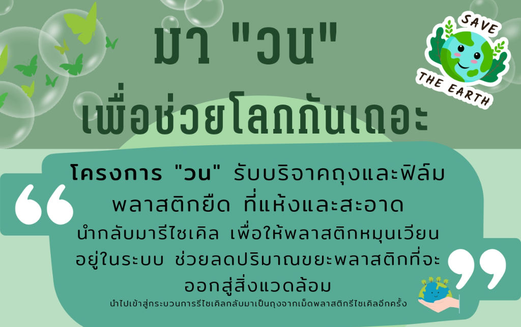 ความมุ่งมั่นของเราคือการเป็น "สำนักงานสีเขียว" ที่ใส่ใจสิ่งแวดล้อม โครงการ "วน" เป็นส่วนหนึ่งของการสร้างอนาคตที่ยั่งยืนและลดขยะอย่างมีประสิทธิภาพ ">กิจกรรมเพื่อสิ่งแวดล้อมจากโครงการ "วน"
