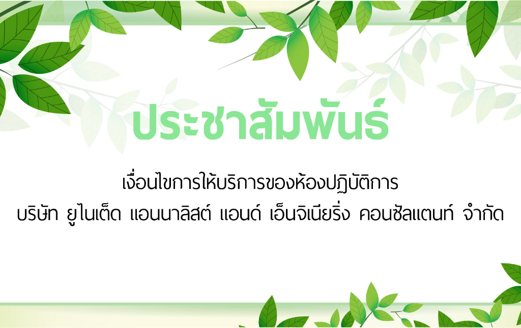 เงื่อนไขการให้บริการของห้องปฏิบัติการ บริษัท ยูไนเต็ด แอนนาลิสต์ แอนด์ เอ็นจิเนียริ่ง คอนซัลแตนท์ จำกัด (ยูเออี)